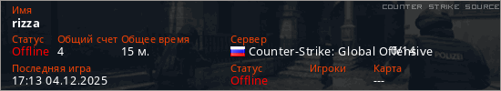 Играет на Counter Strike Source сервере. Страна: РоссияПервый раз замечен 02:41 03.12.2025