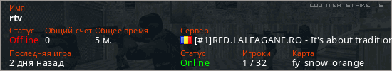 Играет на Counter Strike 1.6 сервере. Страна: РумынияПервый раз замечен 23:04 21.02.2026