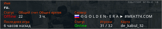 Играет на Counter Strike 1.6 сервере. Страна: РоссияПервый раз замечен 12:31 12.11.2025
