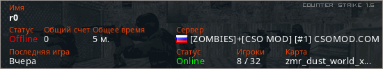 Последний раз был в сети Вчера Игрок с таким ником замечен на 8 серверах