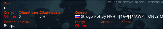Играет на Counter Strike Global Offensive сервере. Страна: РоссияПервый раз замечен 07:38 19.01.2026