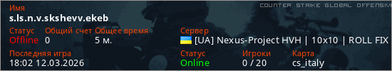 Играет на Counter Strike Global Offensive сервере. Страна: УкраинаПервый раз замечен 17:18 12.03.2026