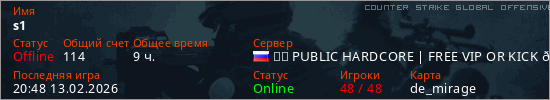 Играет на Counter Strike Global Offensive сервере. Страна: РоссияПервый раз замечен 17:33 09.03.2025
