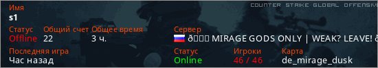 Играет на Counter Strike Global Offensive сервере. Страна: РоссияПервый раз замечен 12:20 31.01.2025