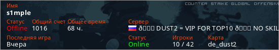 Последний раз был в сети Вчера Игрок с таким ником замечен на 74 серверах