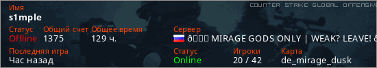 Играет на Counter Strike Global Offensive сервере. Страна: РоссияПервый раз замечен 19:25 07.12.2023