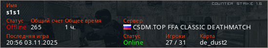 Последний раз был в сети 20:56 03.11.2025 Игрок с таким ником замечен на 20 серверах