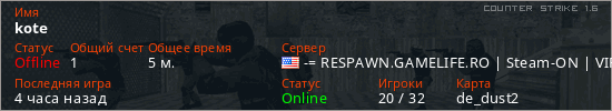 Играет на Counter Strike 1.6 сервере. Страна: СШАПервый раз замечен 20:41 12.02.2026