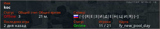 Играет на Counter Strike 1.6 сервере. Страна: РоссияПервый раз замечен 13:18 08.03.2026