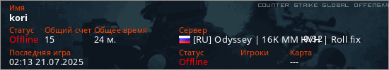 Играет на Counter Strike Global Offensive сервере. Страна: РоссияПервый раз замечен 17:13 16.07.2025