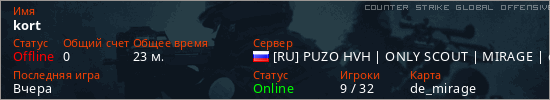 Играет на Counter Strike Global Offensive сервере. Страна: РоссияПервый раз замечен 20:04 04.03.2026