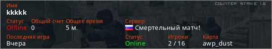 Последний раз был в сети Вчера Игрок с таким ником замечен на 23 серверах