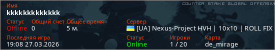 Играет на Counter Strike Global Offensive сервере. Страна: УкраинаПервый раз замечен 18:22 27.03.2026