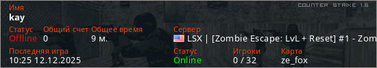 Играет на Counter Strike 1.6 сервере. Страна: СШАПервый раз замечен 09:53 12.12.2025