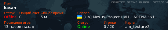 Играет на Counter Strike Global Offensive сервере. Страна: УкраинаПервый раз замечен 20:14 05.02.2026