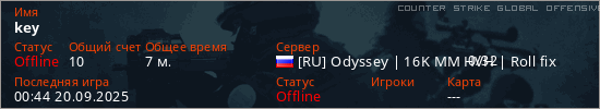 Играет на Counter Strike Global Offensive сервере. Страна: РоссияПервый раз замечен 21:56 19.09.2025