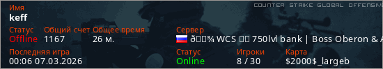 Играет на Counter Strike Global Offensive сервере. Страна: РоссияПервый раз замечен 16:06 06.03.2026