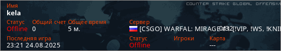 Играет на Counter Strike Global Offensive сервере. Страна: РоссияПервый раз замечен 23:11 24.08.2025