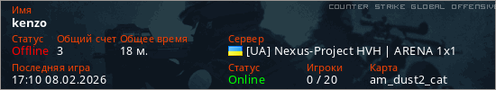 Играет на Counter Strike Global Offensive сервере. Страна: УкраинаПервый раз замечен 21:29 05.02.2026