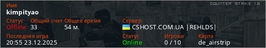 Играет на Counter Strike 1.6 сервере. Страна: УкраинаПервый раз замечен 22:03 17.12.2025