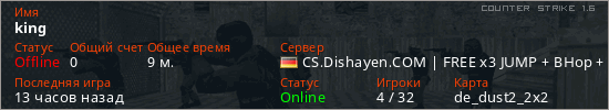 Играет на Counter Strike 1.6 сервере. Страна: ГерманияПервый раз замечен 21:11 24.02.2026