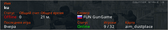 Последний раз был в сети Вчера Игрок с таким ником замечен на 22 серверах