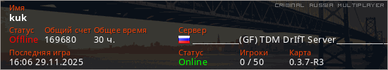 Играет на Criminal Russia Multiplayer сервере. Страна: РоссияПервый раз замечен 14:40 29.06.2025