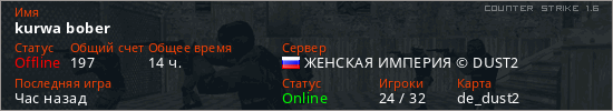 Последний раз был в сети Минуту назад Игрок с таким ником замечен на 5 серверах