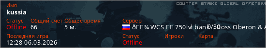 Играет на Counter Strike Global Offensive сервере. Страна: РоссияПервый раз замечен 12:22 06.03.2026