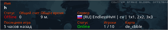 Играет на Counter Strike Global Offensive сервере. Страна: РоссияПервый раз замечен 10:20 05.12.2025