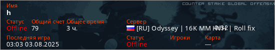 Играет на Counter Strike Global Offensive сервере. Страна: РоссияПервый раз замечен 20:42 19.05.2025