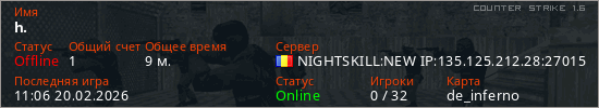 Играет на Counter Strike 1.6 сервере. Страна: РумынияПервый раз замечен 00:13 20.02.2026