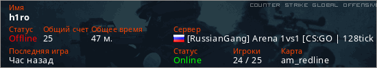 Играет на Counter Strike Global Offensive сервере. Страна: РоссияПервый раз замечен 19:03 10.04.2026