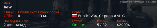 Последний раз был в сети Вчера Игрок с таким ником замечен на 16 серверах