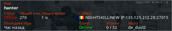 Последний раз был в сети 7 часов назад Игрок с таким ником замечен на 25 серверах