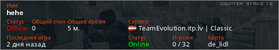 Последний раз был в сети 2 дня назад Игрок с таким ником замечен на 35 серверах