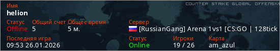 Играет на Counter Strike Global Offensive сервере. Страна: РоссияПервый раз замечен 09:01 26.01.2026