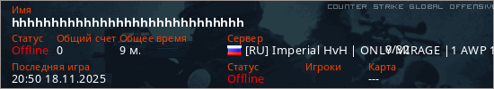 Играет на Counter Strike Global Offensive сервере. Страна: РоссияПервый раз замечен 20:03 18.11.2025