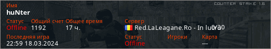Играет на Counter Strike 1.6 сервере. Страна: РумынияПервый раз замечен 14:49 02.07.2022