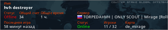 Играет на Counter Strike Global Offensive сервере. Страна: РоссияПервый раз замечен 10:16 13.01.2026