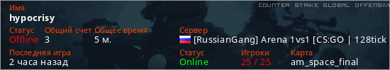 Играет на Counter Strike Global Offensive сервере. Страна: РоссияПервый раз замечен 18:27 05.03.2026