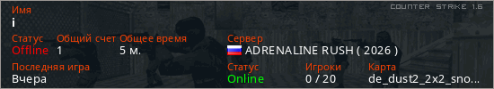 Играет на Counter Strike 1.6 сервере. Страна: РоссияПервый раз замечен 18:50 28.12.2025
