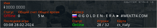Играет на Counter Strike 1.6 сервере. Страна: РоссияПервый раз замечен 03:04 28.02.2024