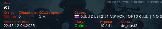 Играет на Counter Strike Global Offensive сервере. Страна: РоссияПервый раз замечен 22:09 12.04.2025