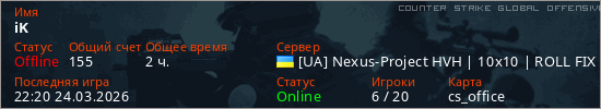 Играет на Counter Strike Global Offensive сервере. Страна: УкраинаПервый раз замечен 17:17 19.03.2026