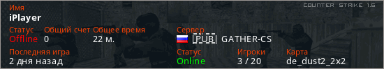 Играет на Counter Strike 1.6 сервере. Страна: РоссияПервый раз замечен 16:16 26.12.2025