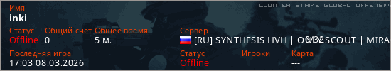 Играет на Counter Strike Global Offensive сервере. Страна: РоссияПервый раз замечен 17:01 08.03.2026