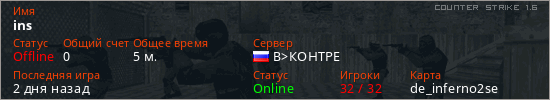 Играет на Counter Strike 1.6 сервере. Страна: РоссияПервый раз замечен 19:39 30.01.2026