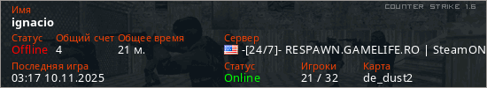Играет на Counter Strike 1.6 сервере. Страна: СШАПервый раз замечен 17:01 19.06.2025