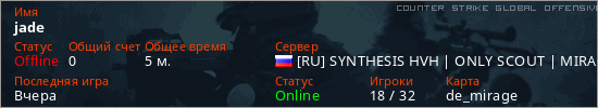 Играет на Counter Strike Global Offensive сервере. Страна: РоссияПервый раз замечен 19:34 08.03.2026